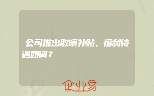 - 公司推出取暖补贴,福利待遇如何?