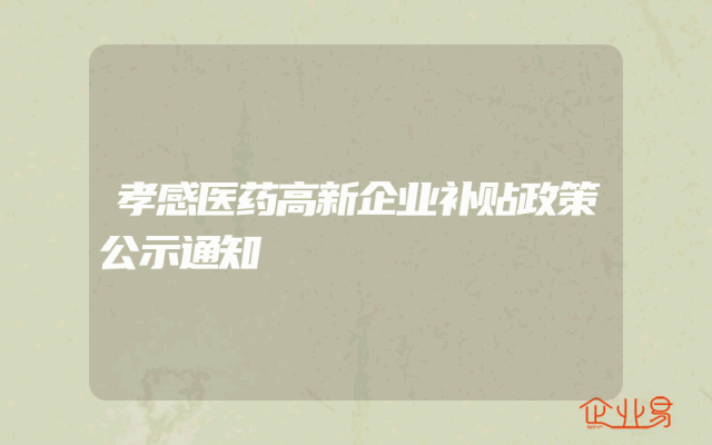 - 孝感医药高新企业补贴政策公示通知