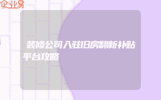 - 装修公司入驻旧房翻新补贴平台攻略