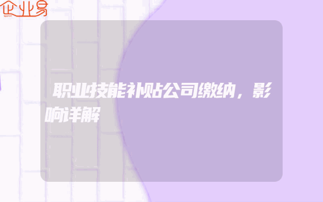 - 职业技能补贴公司缴纳,影响详解