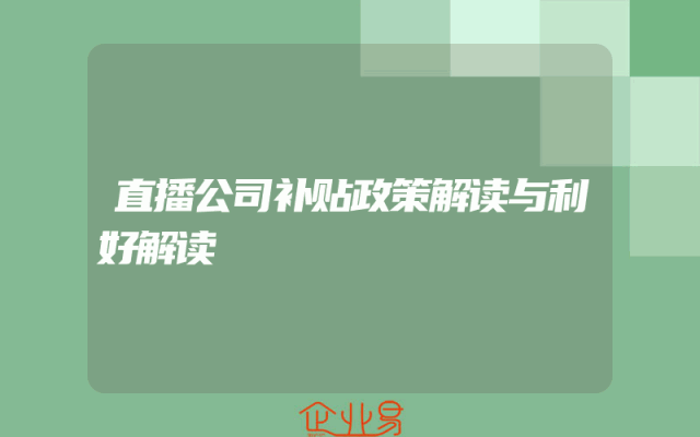 - 直播公司补贴政策解读与利好解读