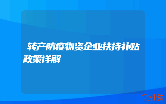 - 转产防疫物资企业扶持补贴政策详解