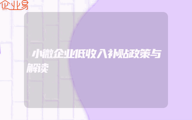 - 小微企业低收入补贴政策与解读
