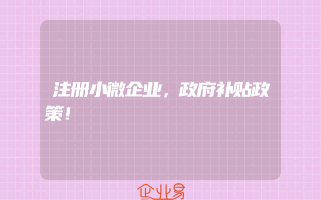 - 注册小微企业,政府补贴政策!