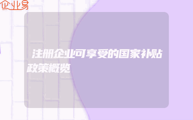 - 注册企业可享受的国家补贴政策概览一、引言随着国家对于企业发展的重视与支持,一系列优惠政策应运而生。注册企业可以享受的国家补贴政策众多,这些政策旨在鼓励创新、促进发展、稳定就业,为企业的成长提供了有力的支持。二、税收优惠注册企业最直接的补贴政