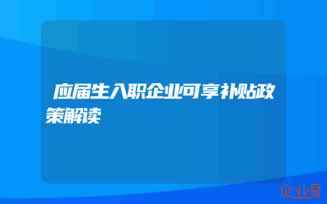 - 应届生入职企业可享补贴政策解读