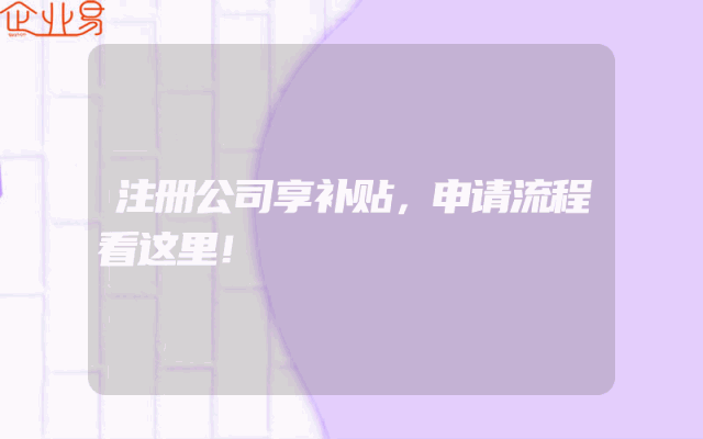 - 注册公司享补贴,申请流程看这里!
