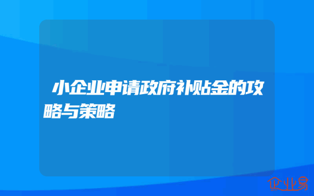 - 小企业申请政府补贴金的攻略与指南了解政策与补贴种类首先,小企业要想成功申请政府补贴金,必须要对相关政策及补贴种类有深入的了解。政府针对小微企业的补贴政策包括但不限于创业扶持、科技创新、节能减排、就业培训等多个方面。因此,企业需根据自身发展需