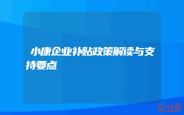 - 小康企业补贴政策解读与支持要点