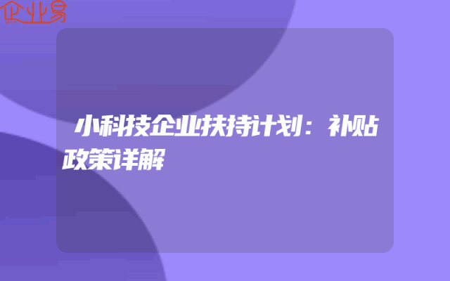 - 小科技企业扶持计划:补贴政策详解