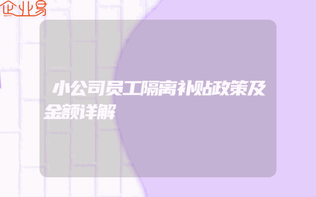 - 小公司员工隔离补贴政策及金额详解