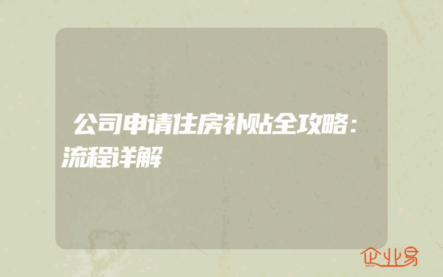- 公司申请住房补贴全攻略:流程详解