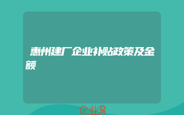 - 惠州建厂企业补贴政策及金额解析一、概述惠州市为了鼓励企业投资建厂,推动地方经济发展,制定了一系列补贴政策。这些政策从多个方面对企业进行扶持,旨在降低企业运营成本,提高市场竞争力。以下是惠州建厂企业补贴政策及金额的详细解析。二、土地补贴针对在