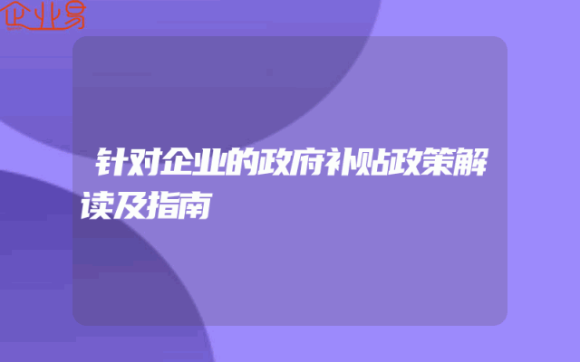 - 企业政府补贴政策解读及申请指南一、政府补贴政策概述在当前经济环境下,政府为了鼓励企业创新、促进产业升级、维护社会稳定,推出了一系列的补贴政策。这些政策涵盖了多个领域,包括技术创新、环保治理、就业培训等方面,企业可以根据自身需求和发展方向选择