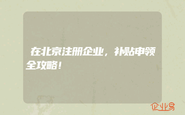 - 北京注册企业,补贴申领全攻略!一、北京企业注册流程在北京注册企业,首先需要了解整个注册流程。从选定企业类型、准备材料到提交申请,每一步都需精心准备。企业注册时,需提交相关证件,如身份证、租赁合同、公司章程等。此外,还需在银行开设企业账户,完