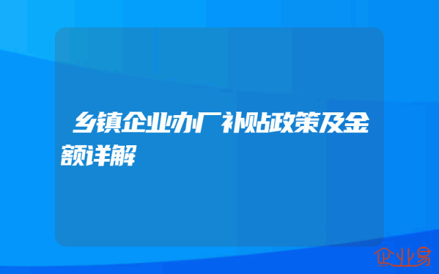 - 乡镇企业办厂补贴政策及金额详解