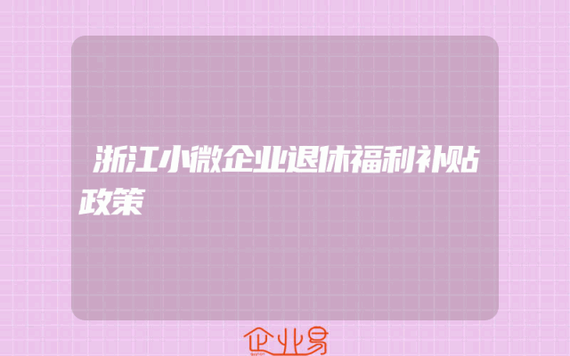 - 浙江小微企业退休福利补贴政策