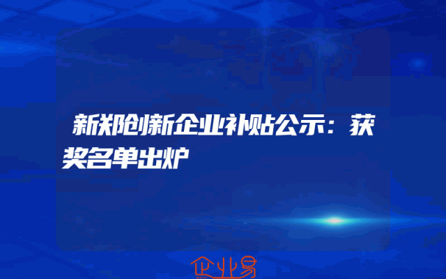 - 新郑创新企业补贴公示:获奖名单出炉
