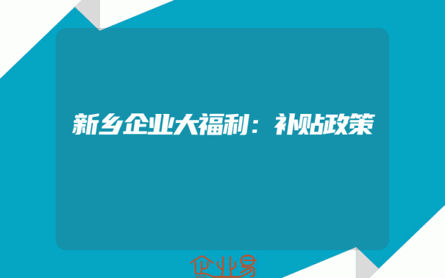 - 新乡企业大福利:补贴政策