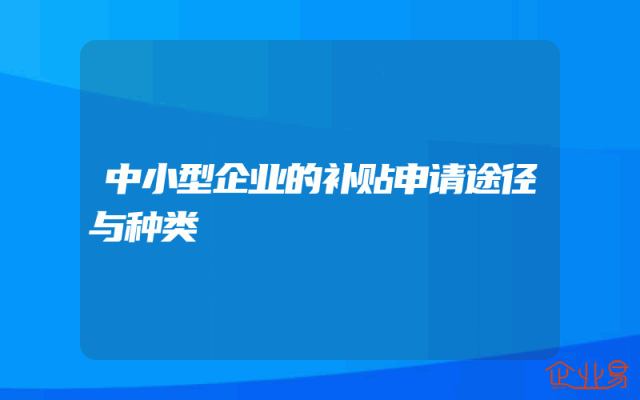 - 中小型企业的补贴申请途径与种类解析一、补贴政策的概述随着国家对中小企业发展的重视,各类补贴政策如雨后春笋般涌现,为中小企业提供了强有力的支持。这些补贴旨在缓解企业经济压力,促进技术研发与创新,优化产业结构,提升市场竞争力。接下来,我