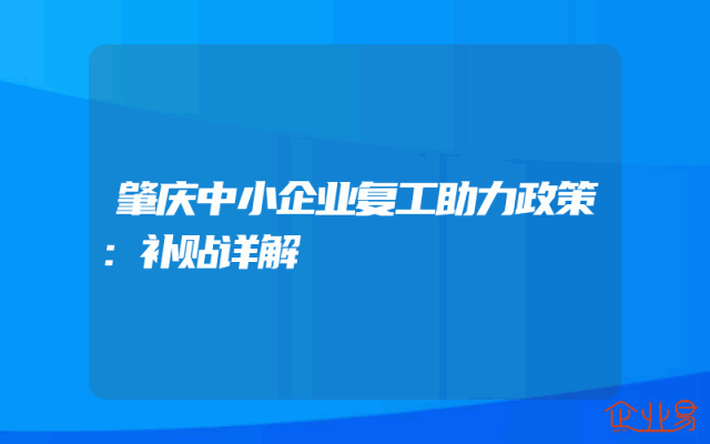 - 肇庆中小企业复工助力政策:补贴详解一、政策背景与意义随着疫情逐渐稳定,全国各地的企业开始有序复工。为了支持中小企业度过难关,肇庆市政府积极出台了一系列助力企业复工的政策。这些政策不仅有助于企业恢复生产,更是对稳定社会经济有着重大意义。二、补