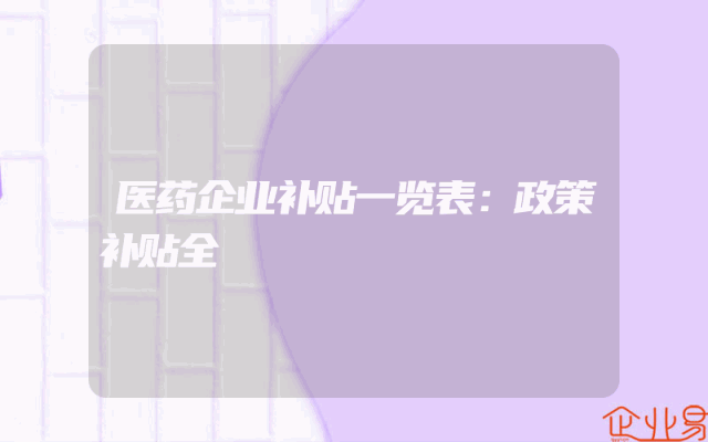 - 医药企业补贴一览表:政策补贴全解析一、医药企业补贴政策概述近年来,为支持医药企业的发展和创新,我国政府推出了一系列补贴政策。这些政策旨在鼓励医药企业加大研发投入,促进产业升级,提高市场竞争力。本文将对