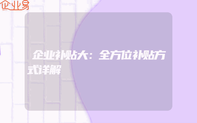- 企业补贴大解析:全方位补贴方式详解一、企业补贴的基本概念企业补贴是政府为了鼓励企业发展和创新,给予企业的一种经济支持。这种补贴可以是财政拨款、税收减免、贷款优惠等多种形式。全方位的企业补贴方式旨在帮助企业解决不同方面的问题,从而促进企业健康