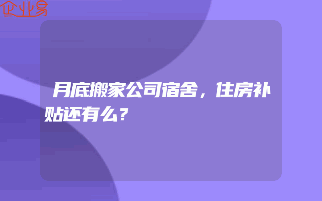 - 月底搬家公司宿舍,住房补贴还有么?搬家之际的住房补贴探讨随着月底的临近,不少在公司宿舍居住的员工面临着搬家的困境。在考虑搬家相关事宜的同时,一个大家都关注的问题浮出了水面——搬家后是否还能享受到住房补贴。公司政策与住房补贴首先,员工能否获得