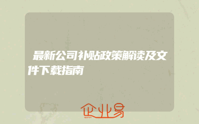 - 最新公司补贴政策解读及文件下载指南一、补贴政策的背景与意义在当今经济环境下,为了鼓励企业创新、促进就业和推动行业发展,政府不断推出各类补贴政策。这些政策对于企业和员工而言,都是重要的利好消息。最新的公司补贴政策旨在通过财政支持,帮助企业降低