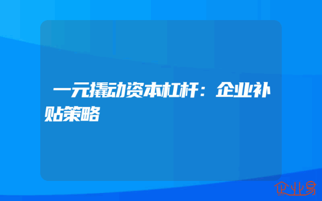 - 一元撬动资本杠杆:企业补贴策略解析一、补贴策略的重要性在当今竞争激烈的市场环境下,企业补贴策略已经成为企业撬动资本杠杆、提升竞争力的重要手段。补贴不仅能够为企业带来资金支持,还能够促进企业创新、优化生产流程、拓展市场等。因此,合理运用补贴策