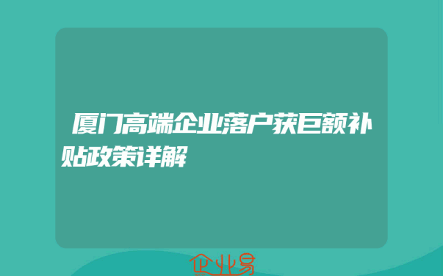 - 厦门高端企业落户获巨额补贴政策详解一、厦门高端企业落户补贴政策概述近年来,厦门市为加快产业结构升级,大力引进高端企业落户,并为此推出了一系列巨额补贴政策。这些政策旨在优化当地的营商环境,吸引更多的国内外知名企业前来投资兴业。从经济转型升级的