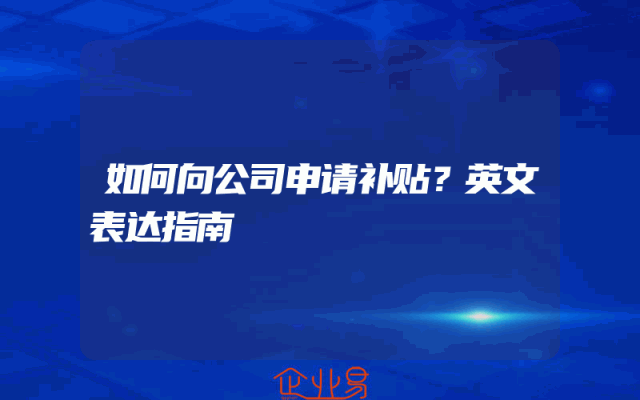- 如何向公司申请补贴?英文表达指南了解补贴政策与公司流程在申请公司补贴之前,首先要对公司的补贴政策进行深入了解。这包括但不限于补贴的种类、申请条件、申请流程以及所需材料。同时,也要清楚公司的内部流程,如哪个部门负责补贴的审批,以及审批的标准和