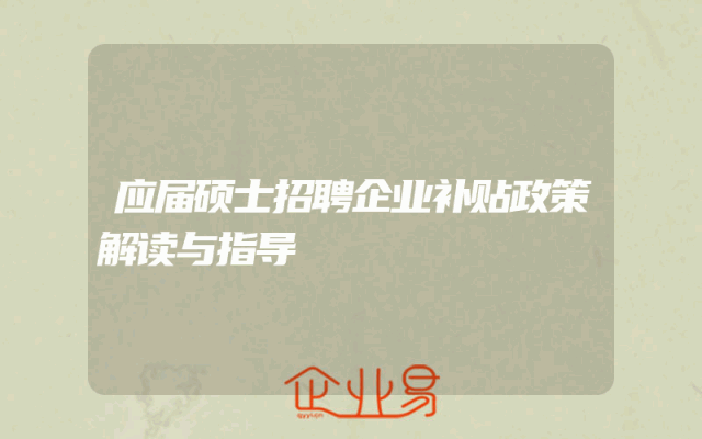 - 应届硕士招聘企业补贴政策解读与指导