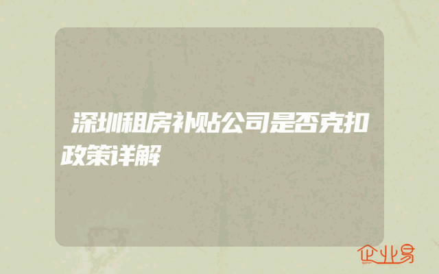 - 深圳租房补贴公司是否克扣政策详解