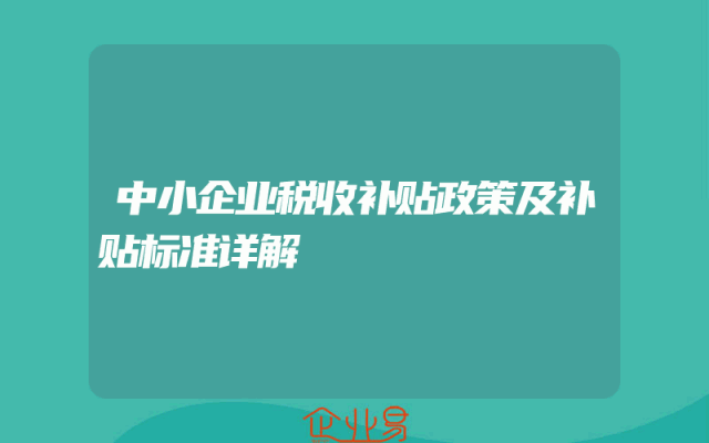 - 中小企业税收补贴政策及补贴标准详解