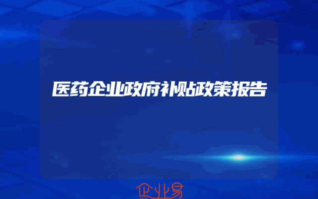 - 医药企业政府补贴政策报告