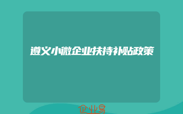 - 遵义小微企业扶持补贴政策
