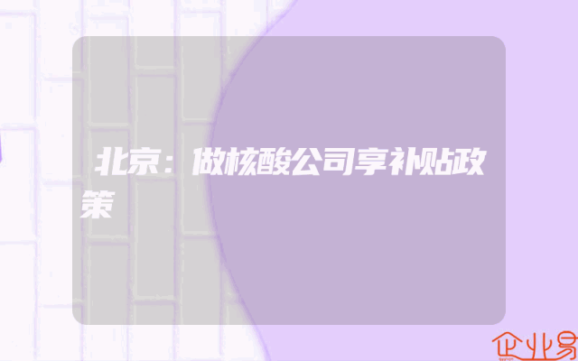 - 北京:做核酸公司享补贴政策