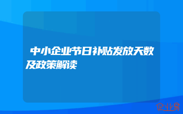 - 中小企业节日补贴发放天数及政策解读一、节日补贴发放的重要性在我国,中小企业是国民经济的重要组成部分。为了促进中小企业的健康发展,提高员工的工作积极性和生产效率,节日补贴成为了企业福利制度中不可或缺的一环。随着传统节日的临近,中小企业对于节日