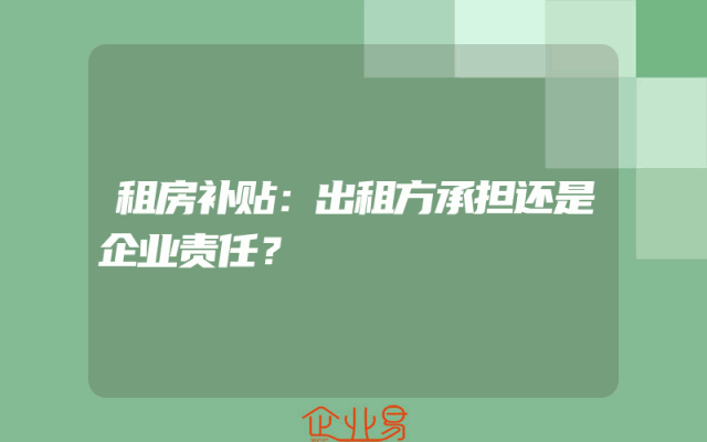 - 租房补贴:出租方承担还是企业责任?租房补贴的概念与现状随着城市化的快速发展,住房问题已成为众多居民关注的焦点。为解决员工的住宿问题,不少企业会采取租房补贴的方式。租房补贴是指政府或企业为员工租赁房屋提供的一种经济补助。在当前的市场环境下,租