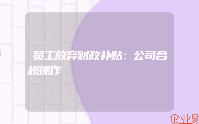 - 员工放弃财政补贴:公司合规操作解析一、了解财政补贴政策在当前的经济发展环境中,财政补贴作为一种重要的经济政策工具,被广泛应用于多个领域。公司有时会获得财政补贴以支持其业务发展或研发创新等。对于企业和员工而言,了解这些财政补贴政策是基础的合规