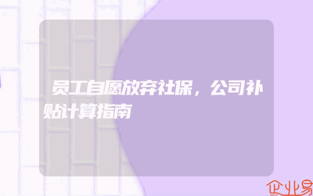 - 员工自愿放弃社保,公司补贴计算指南一、了解社保的重要性在现代社会,社会保险不仅是劳动者权益的重要保证,也是社会稳定的重要保障。然而,有时候员工可能会自愿放弃社保,此时公司应充分了解员工的动机并与其达成共识,同时也需要对公司应支付的社保补贴进