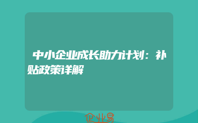 - 中小企业成长助力计划:补贴政策详解一、补贴政策概述在我国经济发展中,中小企业扮演着重要角色。为支持中小企业发展,政府推出了一系列补贴政策,旨在帮助中小企业解决发展过程中的资金、技术、市场等问题。这些补贴政策为中小企业提供了强有力的支持,促进