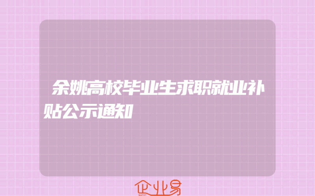 - 余姚高校毕业生求职就业补贴公示通知一、政策背景与目的为了支持高校毕业生的就业创业,促进人才流动与区域经济发展,余姚市政府决定对本地高校毕业生实施求职就业补贴政策。该政策旨在减轻毕业生求职过程中的经济压力,激励更多高校毕业生留在余姚或选择本地