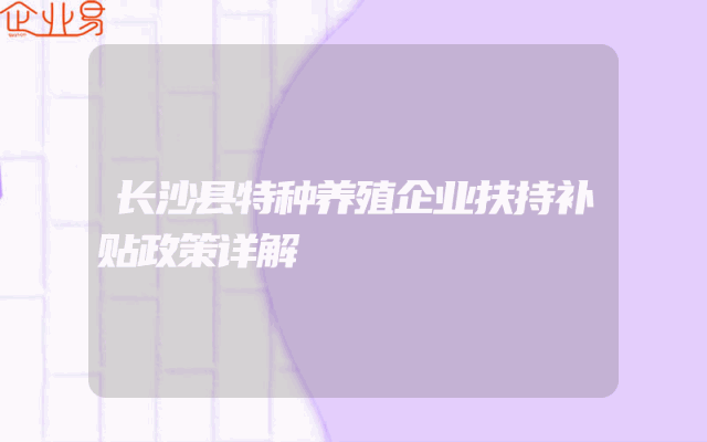 - 长沙县特种养殖企业扶持补贴政策详解一、政策背景与目标长沙县为推进农业现代化,加快转型升级,对特种养殖企业给予了极大的关注与支持。特种养殖企业扶持补贴政策的出台,旨在鼓励创新、促进产业升级、提高经济效益和社会效益。该政策适用于长沙县内注册、运