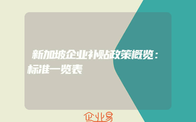 - 新加坡企业补贴政策概览:标准一览表
