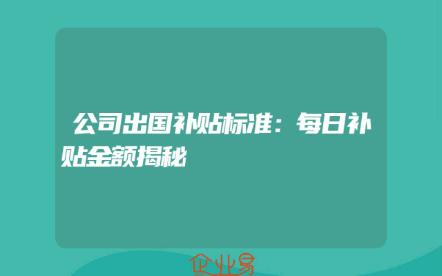 - 公司出国补贴标准:每日补贴金额揭秘一、引言随着全球化的发展,企业出国交流、考察和拓展业务的频率越来越高。为了鼓励员工积极参与公司国际化进程,许多企业会为员工出国提供一系列的补贴。其中,每日补贴金额是员工最为关注的部分之一。本文将详细揭秘公司