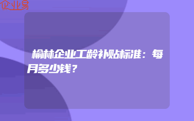 - 榆林企业工龄补贴标准:每月多少钱?一、榆林企业工龄补贴概述随着社会经济不断发展,员工福利成为企业关注的重点之一。榆林地区的企业在员工福利方面,尤其是工龄补贴上,有其特定的标准和规定。工龄补贴是对员工长期忠诚服务的回馈,也是激励员工继续为企业