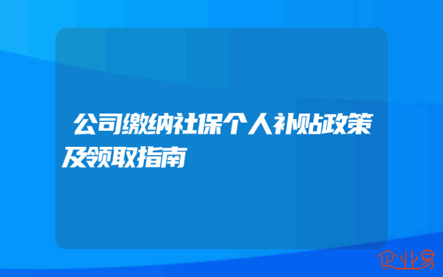 - 公司缴纳社保个人补贴政策及领取指南