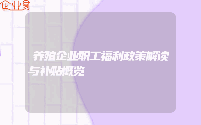 - 养殖企业职工福利政策解读与补贴概览